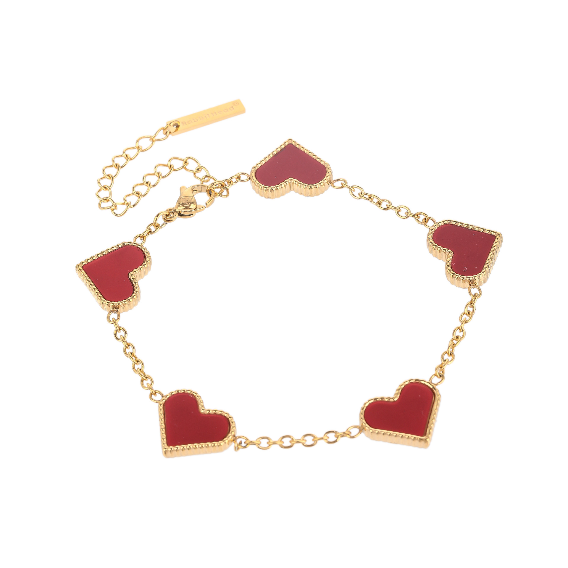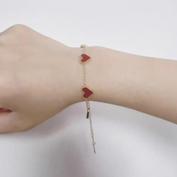 五个单面红尖桃心手链,304不锈钢,18K真金