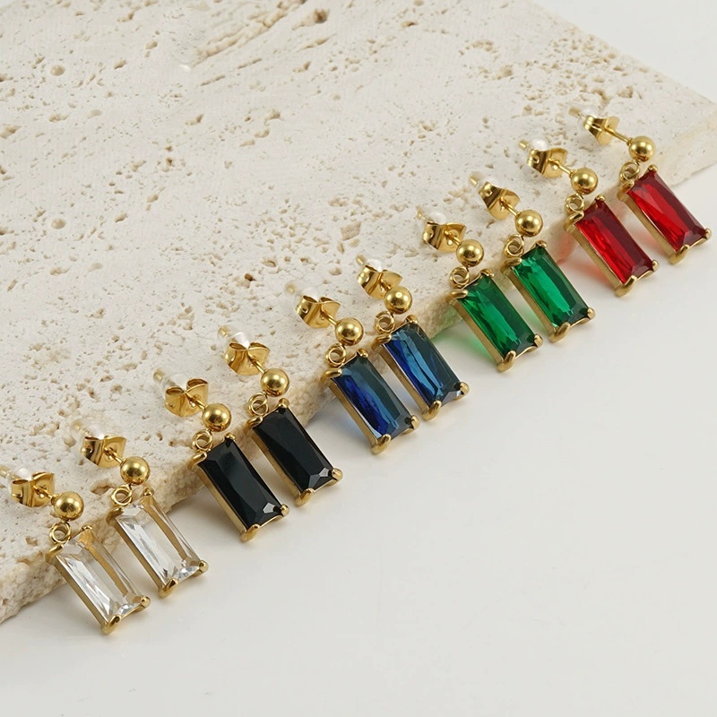 欧美时尚新款几何不锈钢彩色锆石耳钉女简约百搭轻奢复古钛钢耳钉,304不锈钢,18K真金 黑锆 材质种类:不锈钢 | 商品编号:09562ZE363G