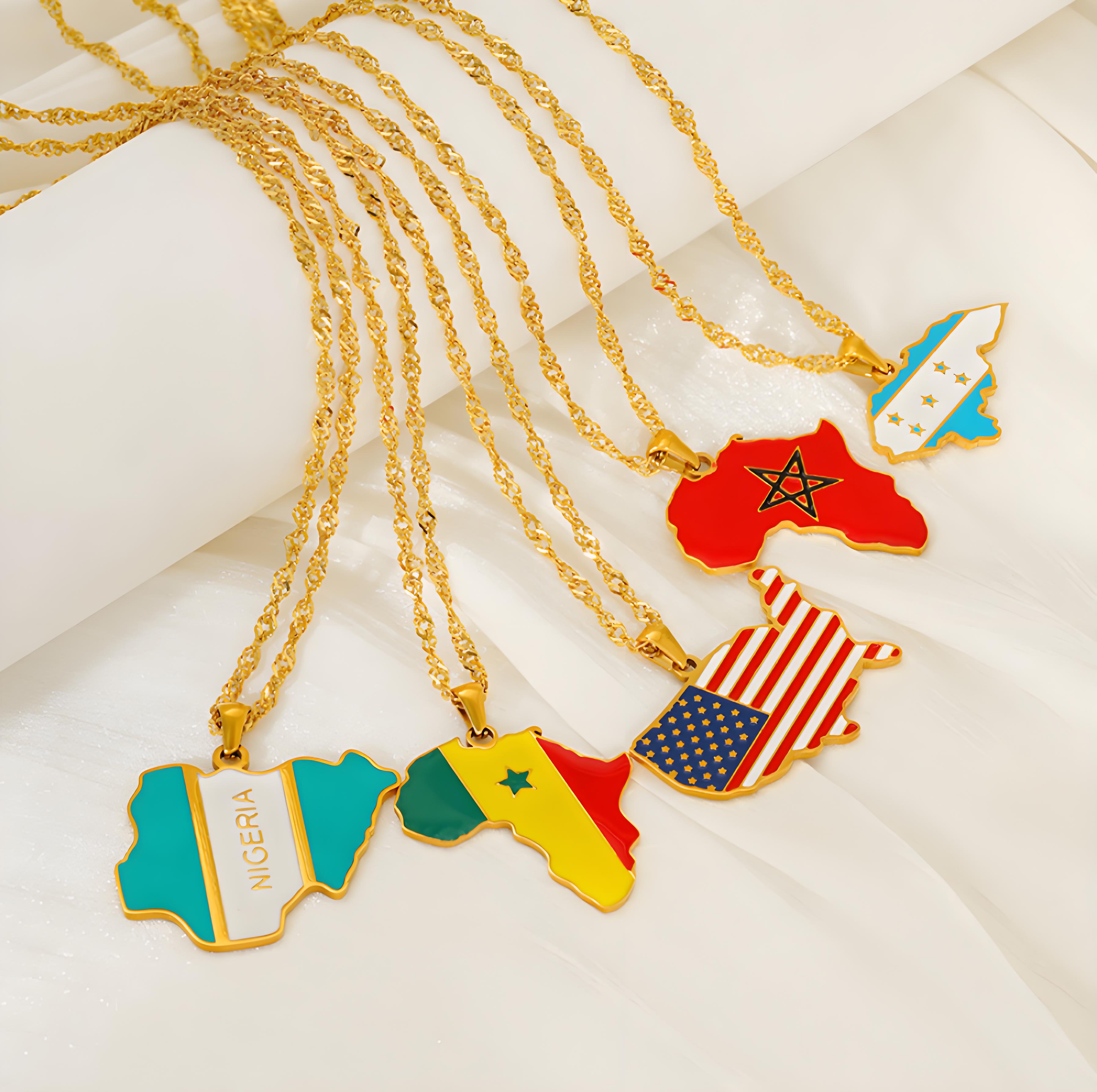 尼拉加瓜地图项链,304不锈钢,18K真金