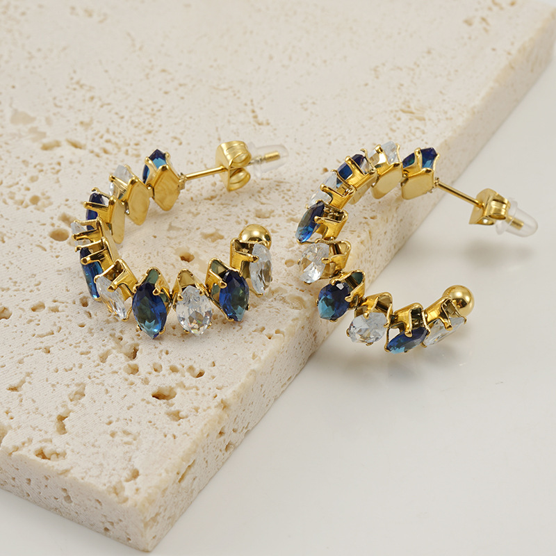 耳环,304不锈钢,18K真金+黑锆