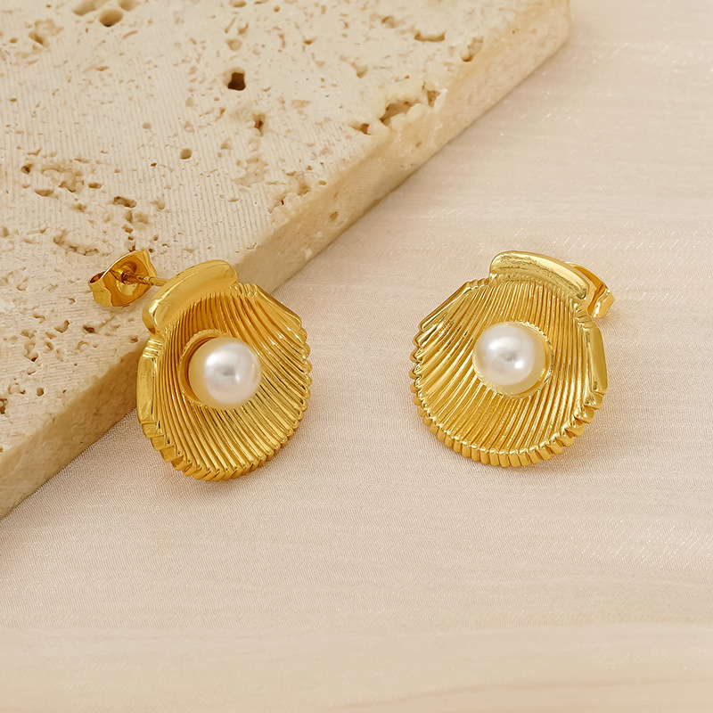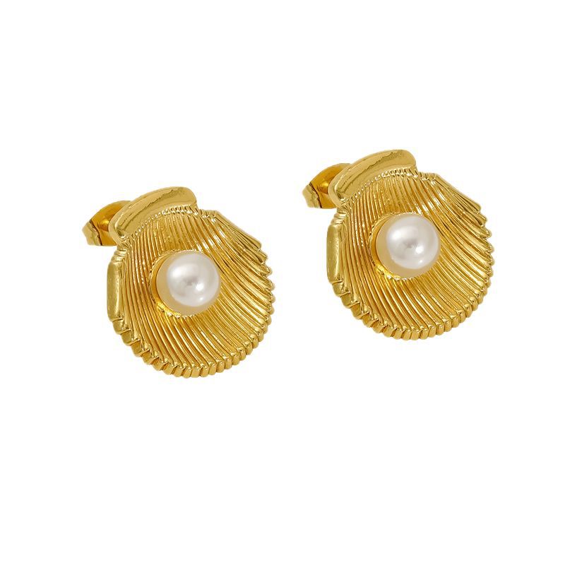贝壳形状耳钉,304不锈钢,18K真金 材质种类:不锈钢 | 商品编号:09562ZE1905G