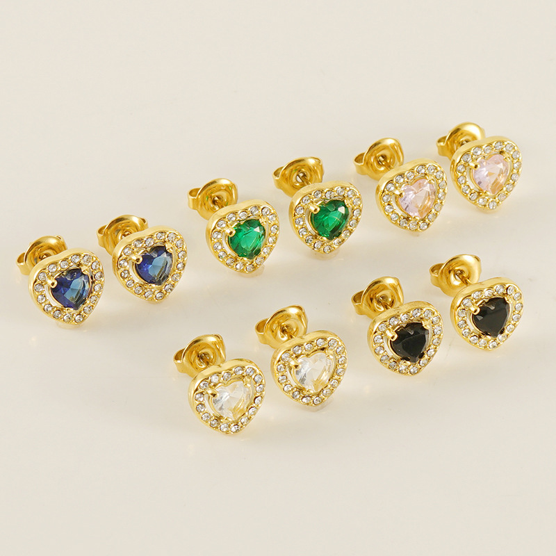 爱心耳钉,304不锈钢,18K真金 粉锆