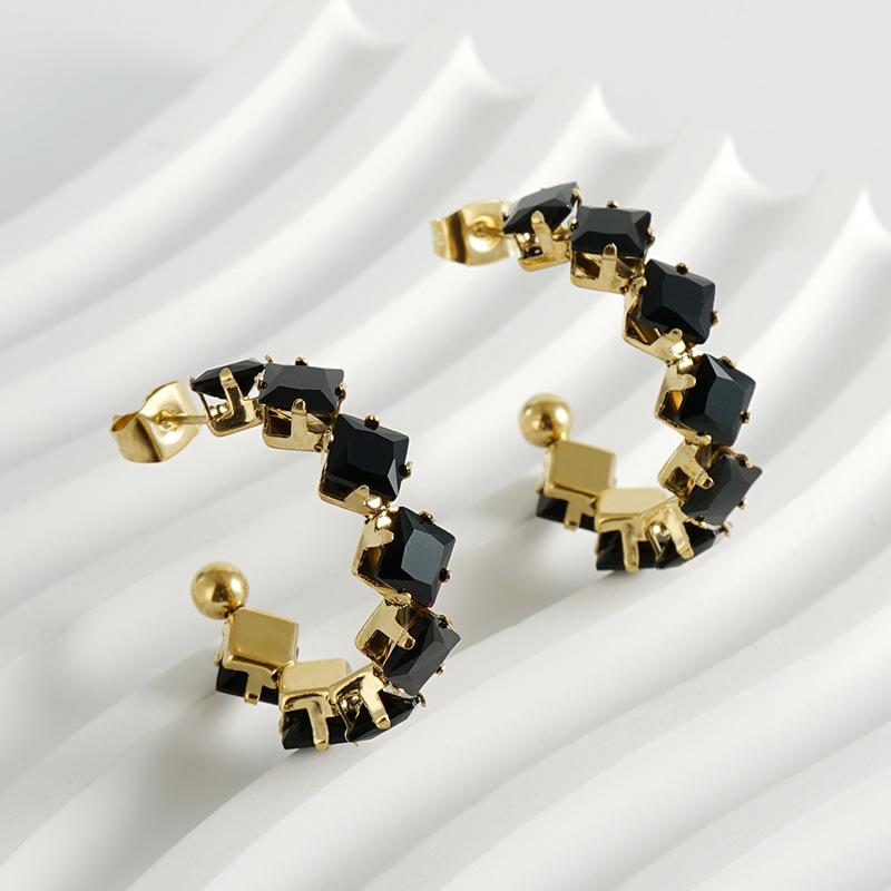 耳环,304不锈钢,18K真金+黑皓