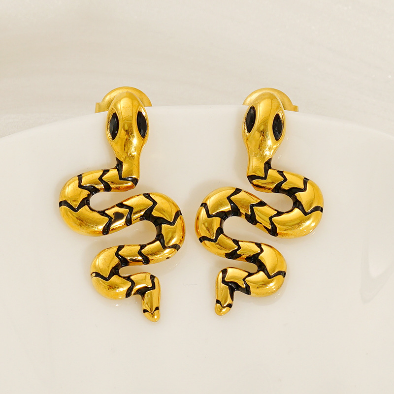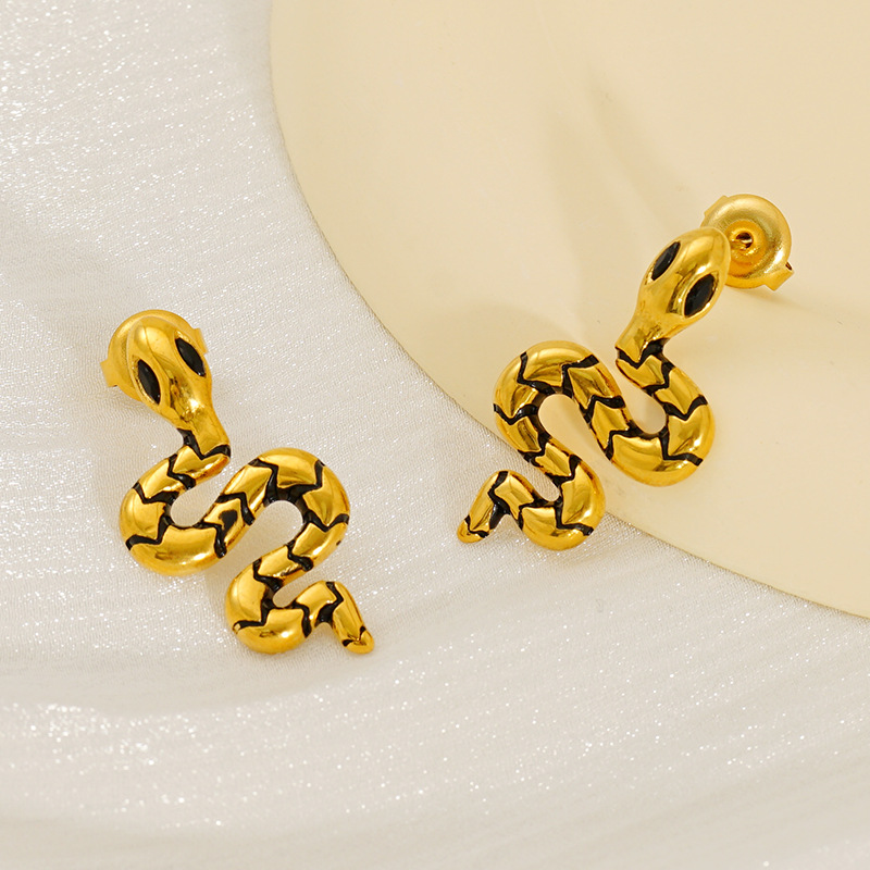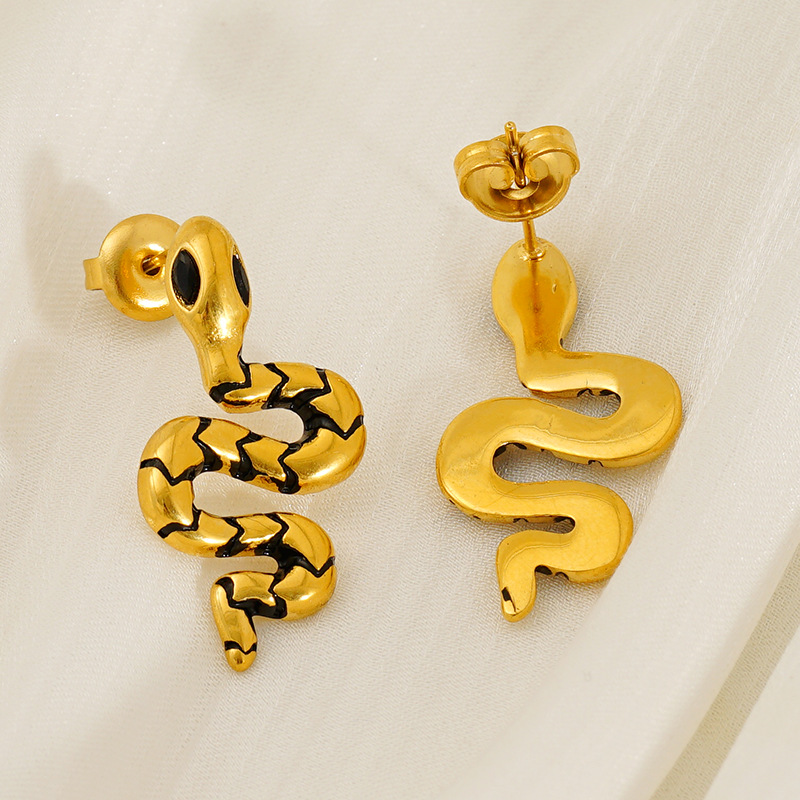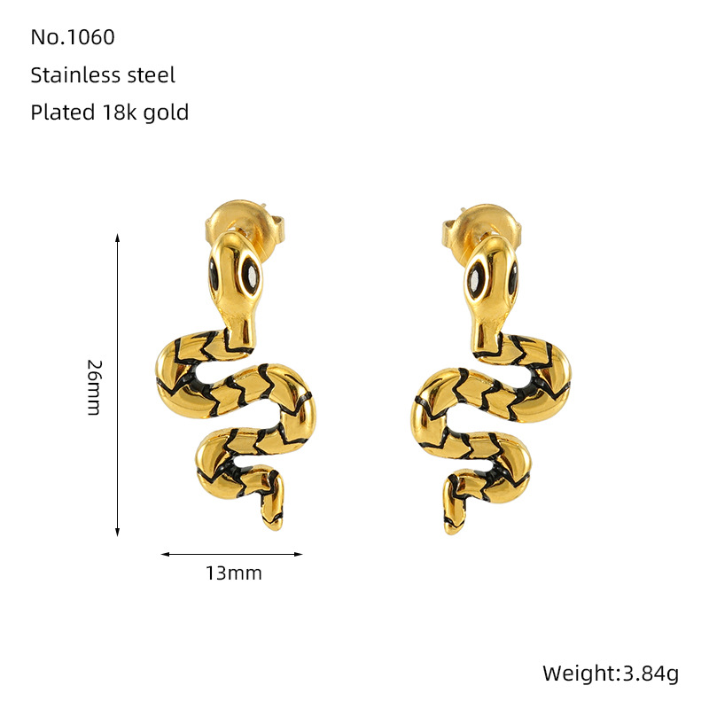 蛇形耳钉,304不锈钢,18K真金