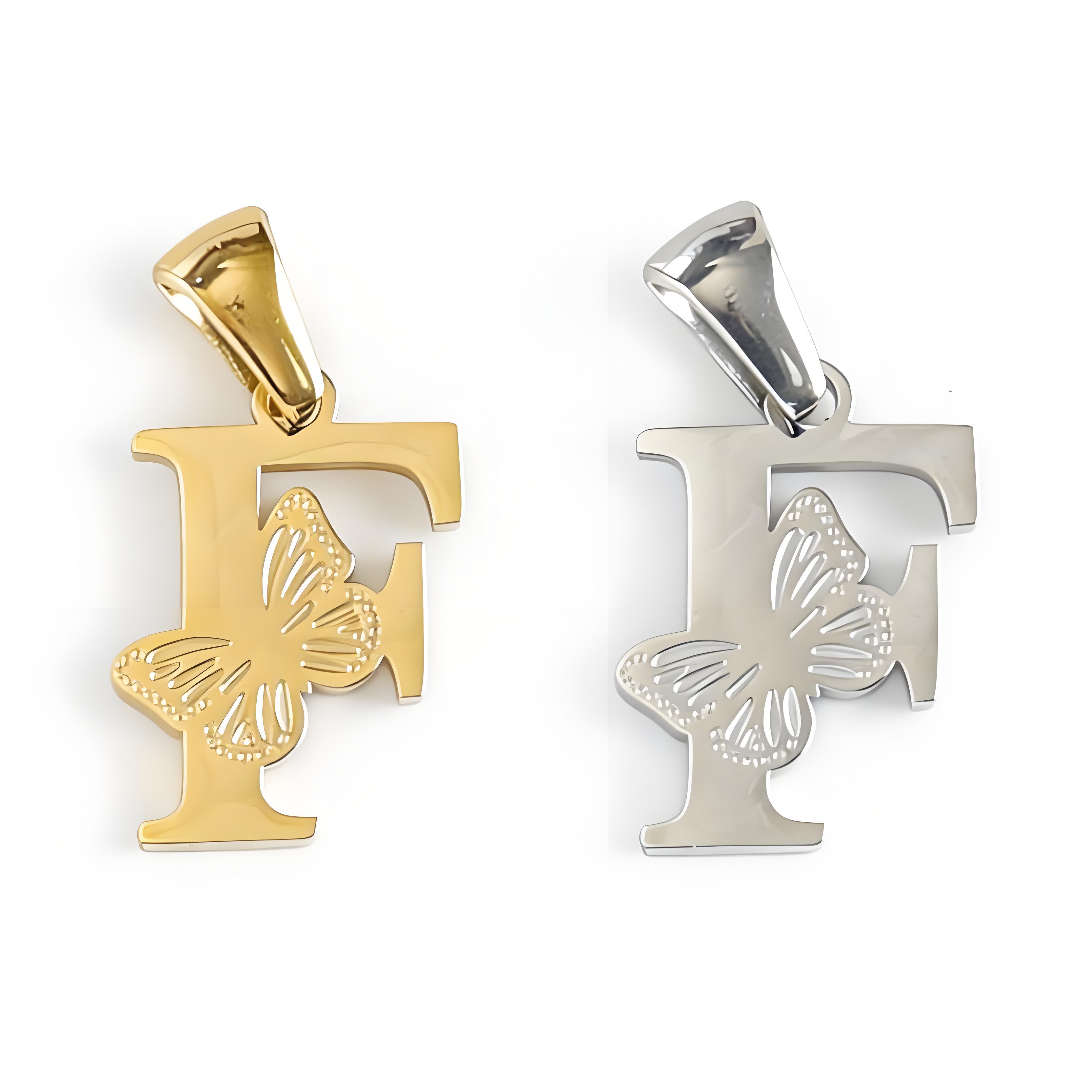 字母F吊坠,304不锈钢,钢色
