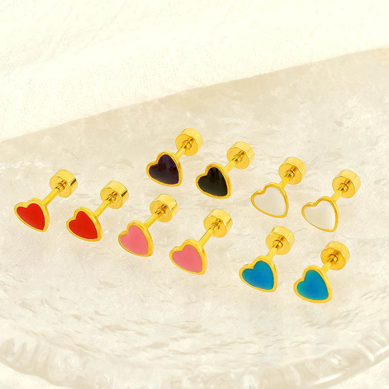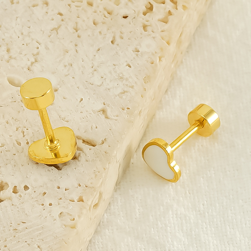 爱心耳钉,304不锈钢,18K真金 其它:滴油:白色 材质种类:不锈钢 | 商品编号:09562ZXG1359