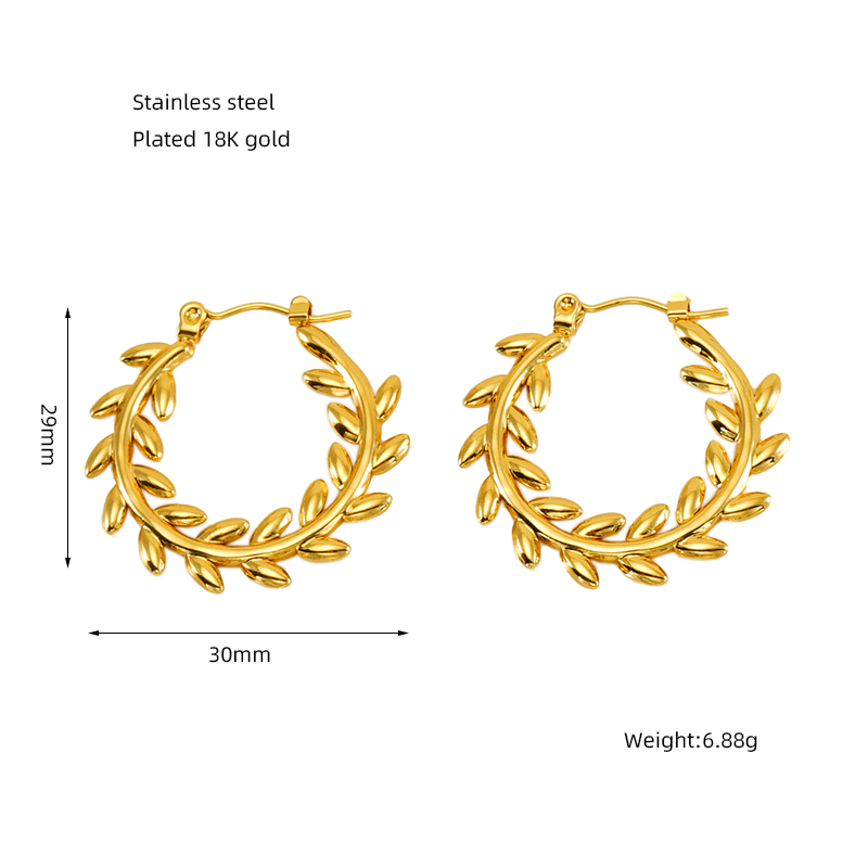欧美跨境麦穗小众设计18K不锈钢耳环耳饰钛钢耳钉,304不锈钢,18K真金 材质种类:不锈钢 | 商品编号:09562ZE1264G