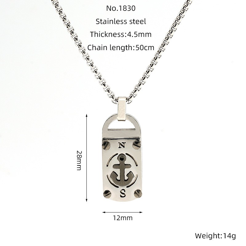嘻哈时尚八芒星方牌钛钢吊坠项链欧美复古个性不锈钢船锚男士项链,钢色