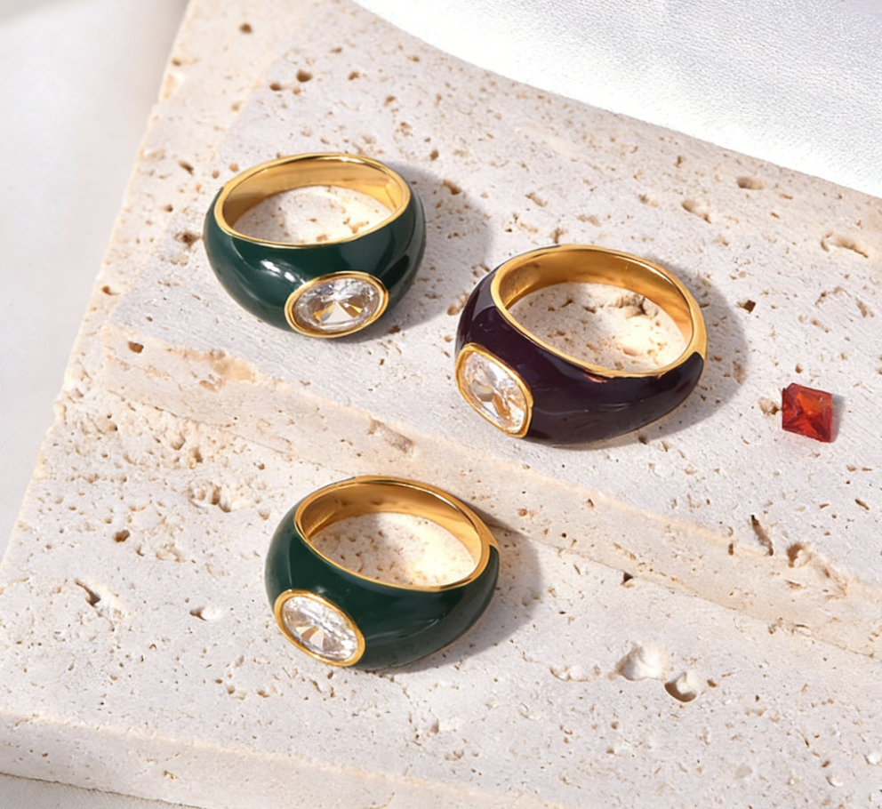 咖色方形钻戒指,304不锈钢,18K真金 材质种类:不锈钢 | 商品编号:24665JZ217