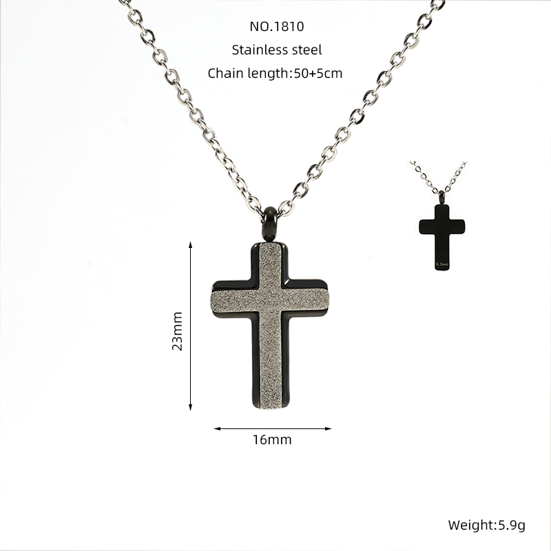 跨境欧美简约时尚钛钢十字架吊坠个性百搭不锈钢项链,304不锈钢,钢色 材质种类:不锈钢 | 商品编号:09562ZN1810M