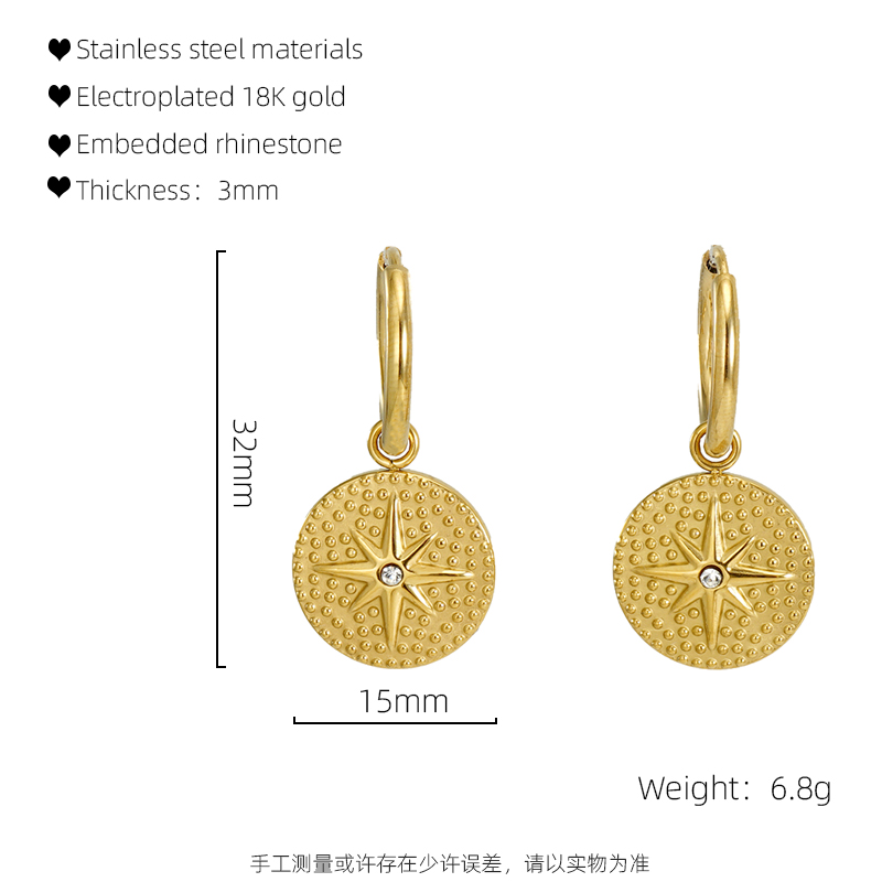 耳环,304不锈钢,18K真金