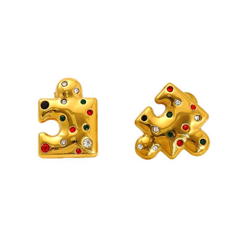 不规则型耳钉,304不锈钢,18K真金