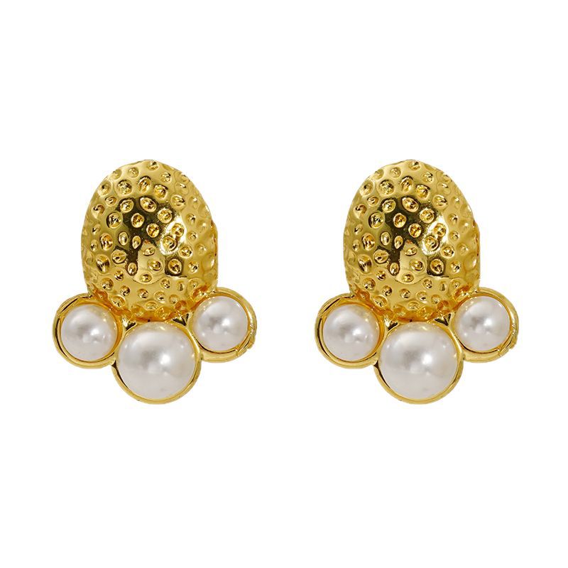 凹凸纹理感水滴形耳钉,304不锈钢,18K真金