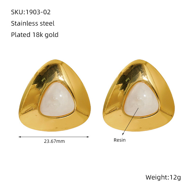 大理石花纹小耳钉,304不锈钢,18K真金