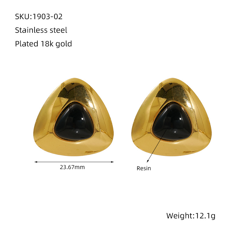 18K不锈钢四叶草耳钉,304不锈钢,18K真金 黑色亚克力