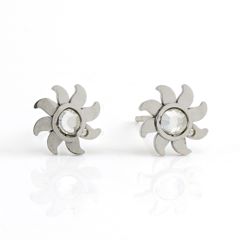 花朵耳钉,304不锈钢,钢色