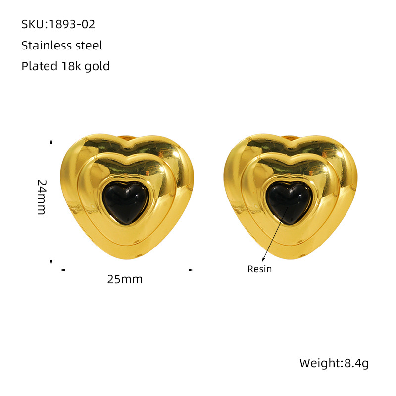 爱心耳钉,304不锈钢,18K真金 树脂:白色