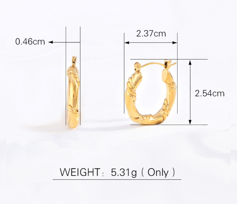 麻花耳环,304不锈钢,18K真金