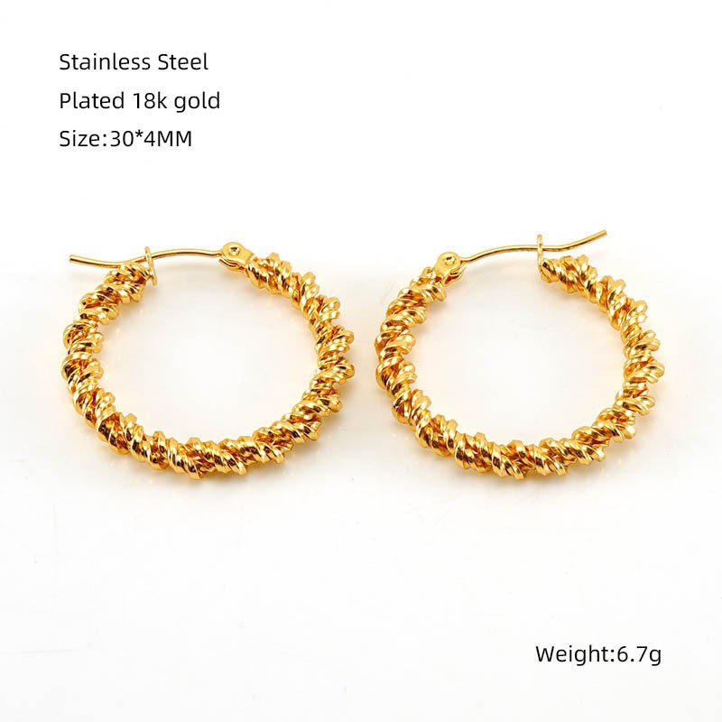 欧美INS风不锈钢耳环扭曲麻花耳圈小众设计感钛钢螺耳钉耳饰,304不锈钢,18K真金