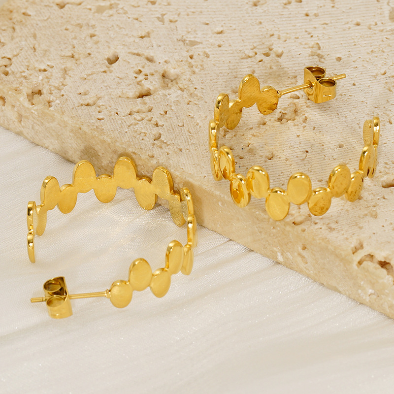 猪鼻子镂空耳环,304不锈钢,18K真金