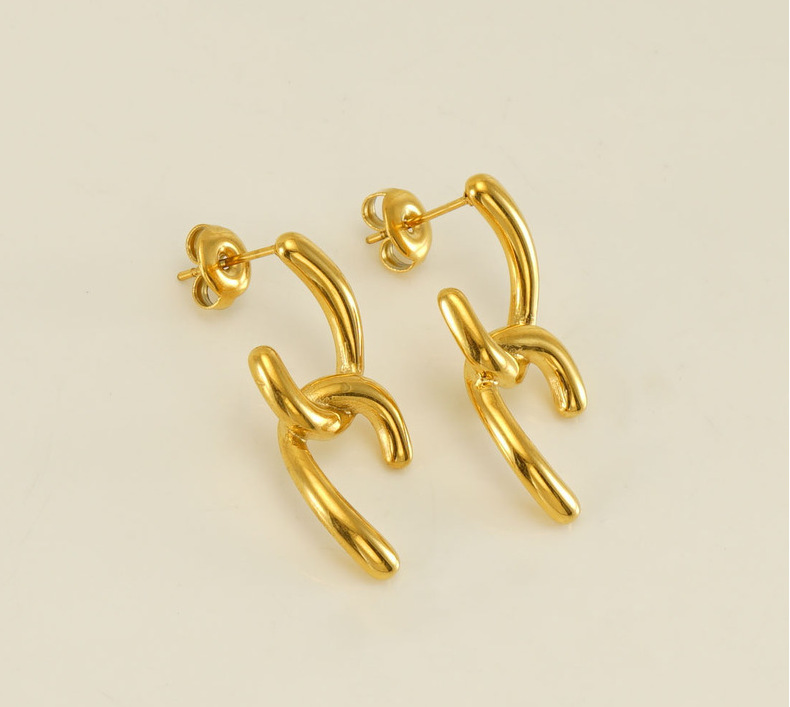 扭曲交叉X造型耳环,304不锈钢,18K真金