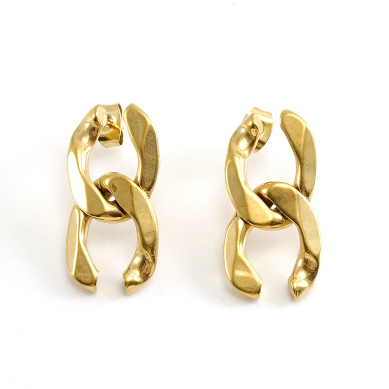 古巴链条耳环,304不锈钢,18K真金