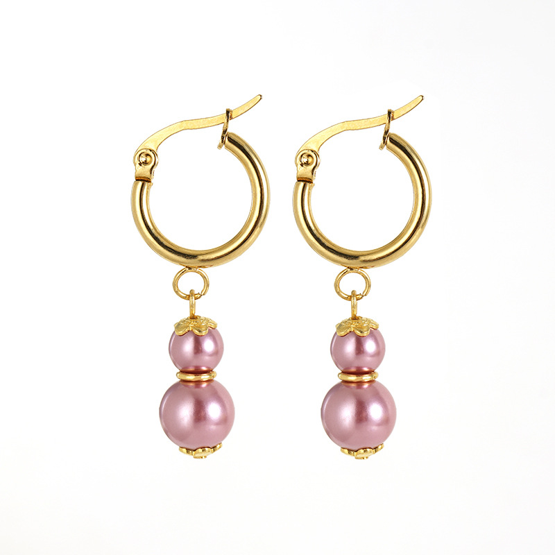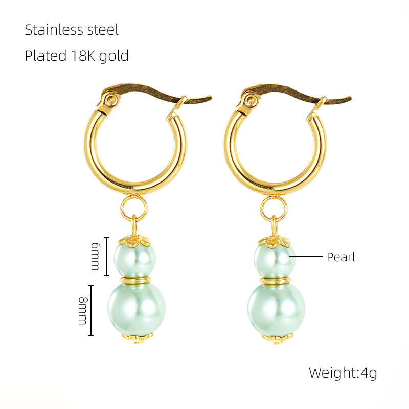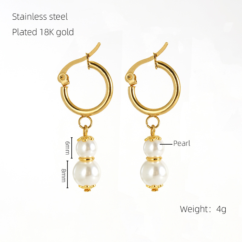 耳环,304不锈钢,18K真金 ABS珍珠:白色