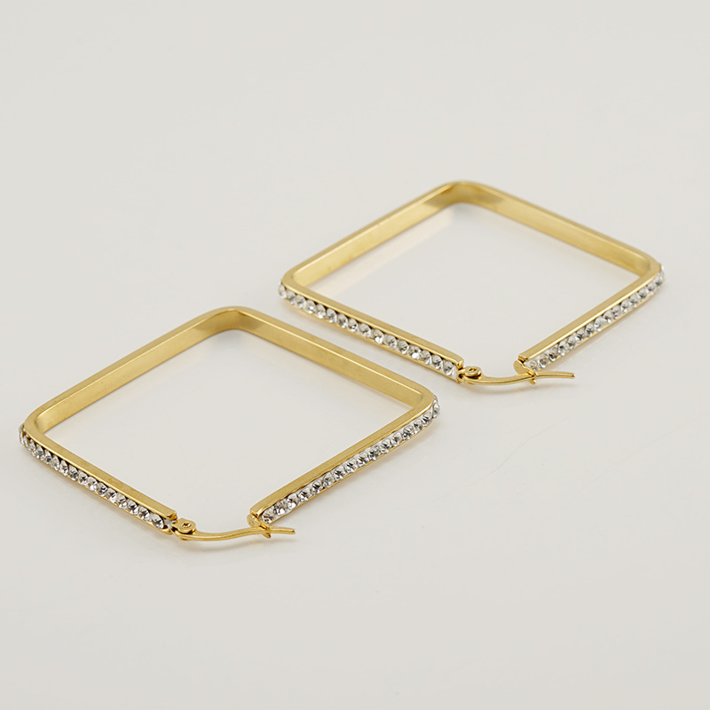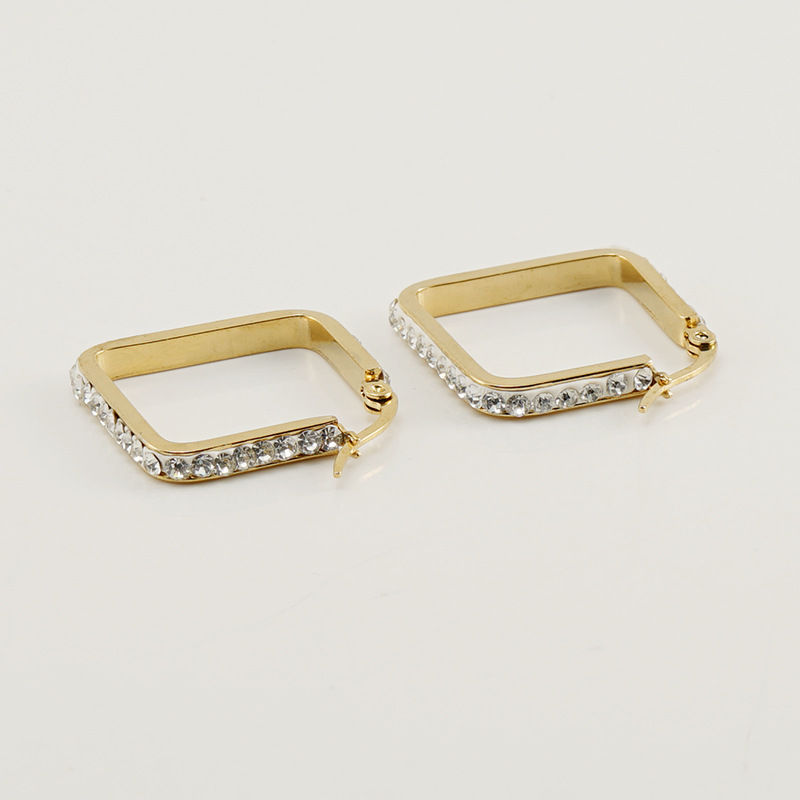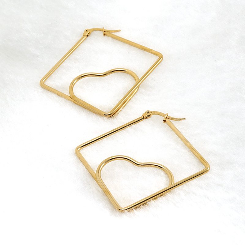 方形耳环,304不锈钢,18K真金