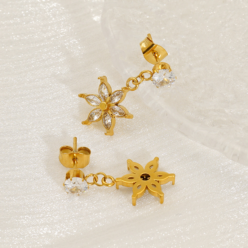 耳环,304不锈钢,18K真金 锆石:白锆
