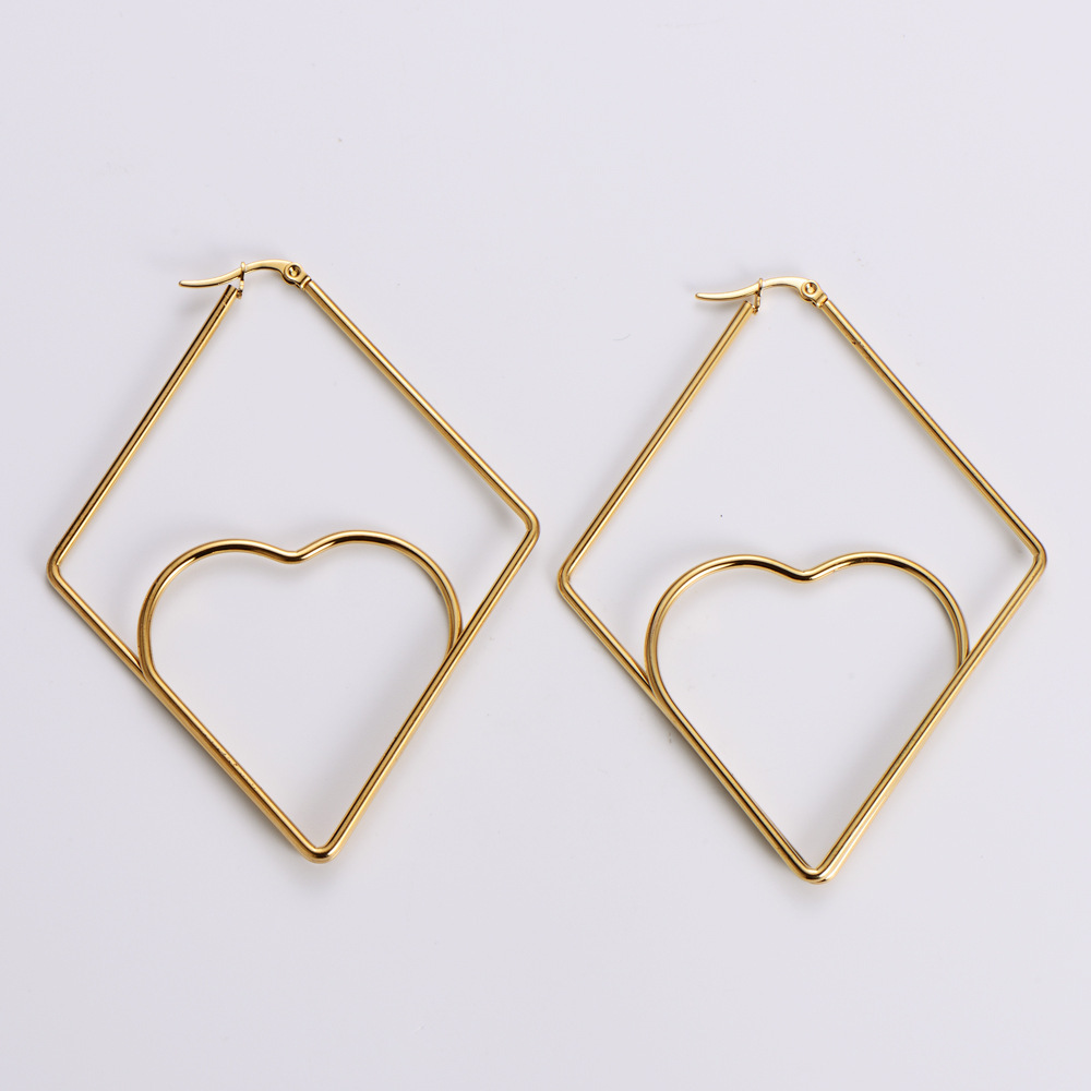 心形耳环,304不锈钢,18K真金