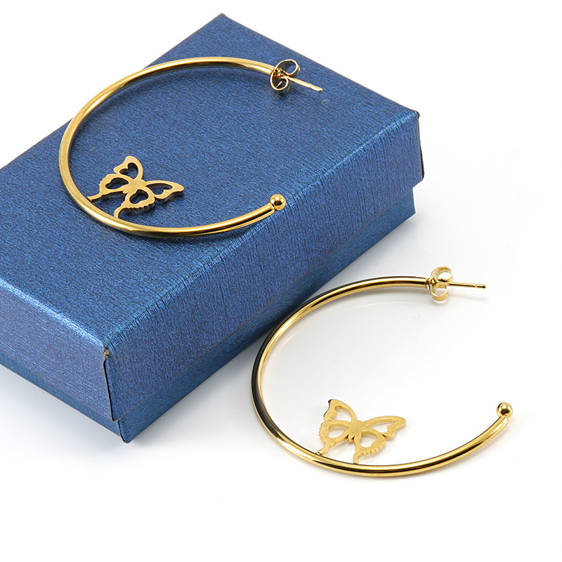 压纹C形耳环,304不锈钢,18K真金