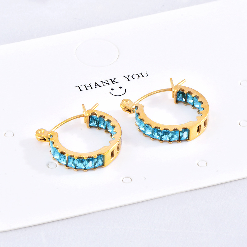麻花耳环,304不锈钢,18K真金 水钻:深绿