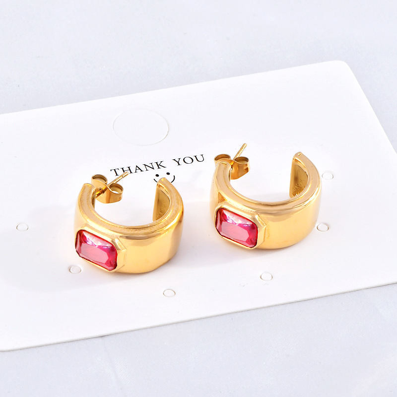 红锆石耳环,304不锈钢,18K真金