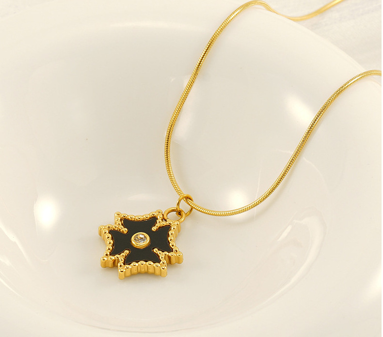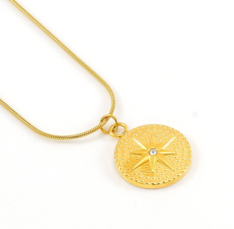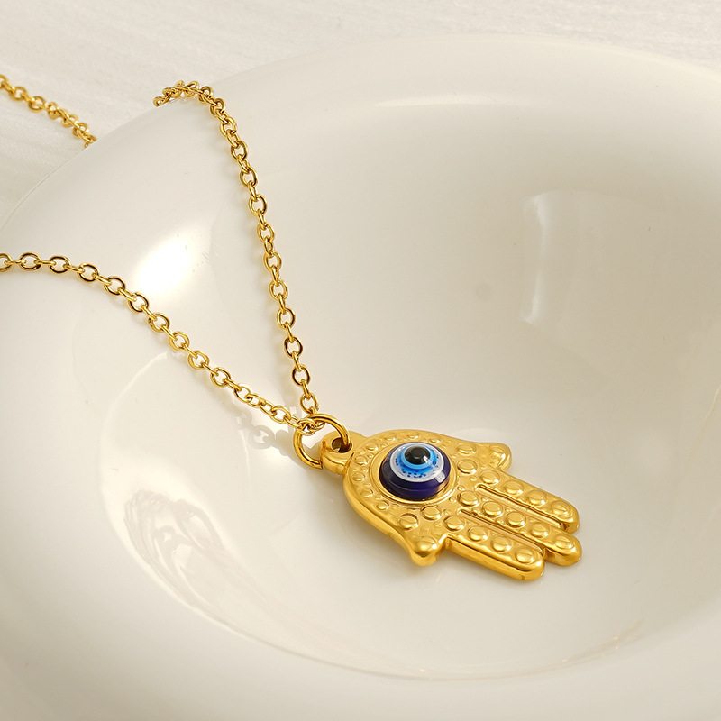 跨境不锈钢镶蓝松石18K项链女外贸钛钢简约钛钢眼睛饰品吊坠现货,304不锈钢,18K真金