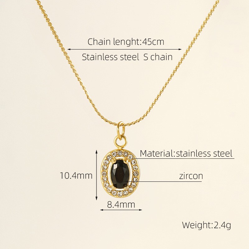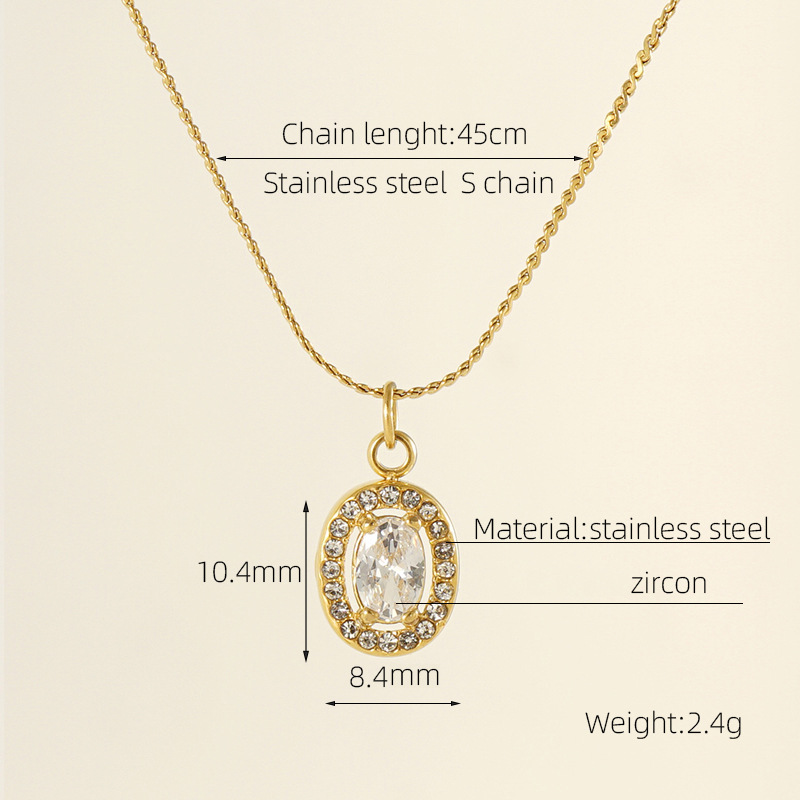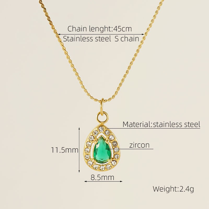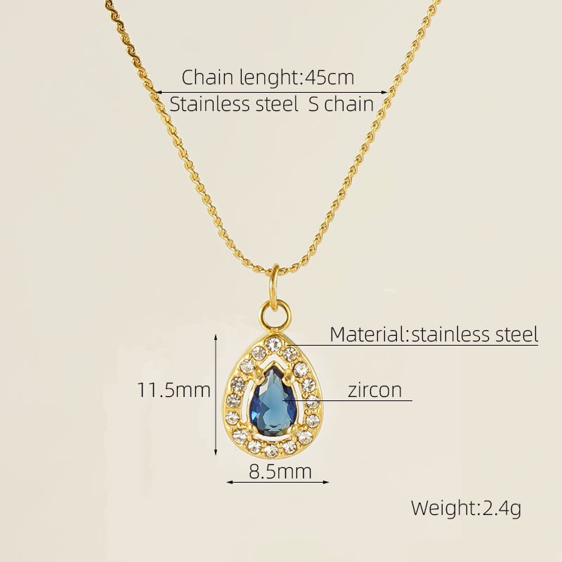 跨境欧美简约风镶锆石水滴形吊坠女18K镀金不锈钢项饰项链女,304不锈钢,18K真金 白锆