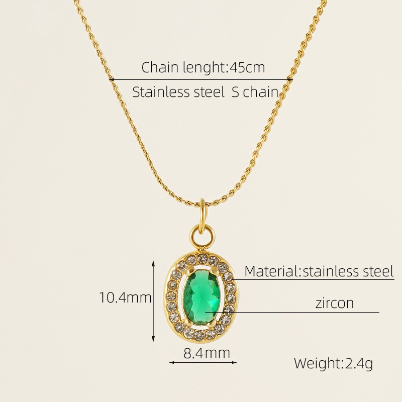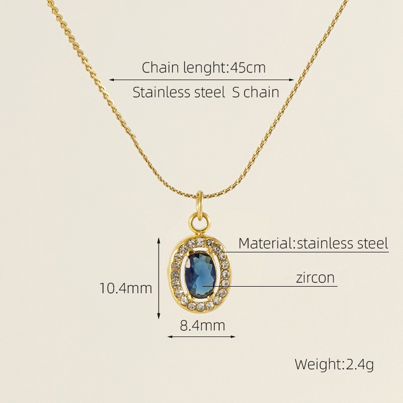 欧美跨境新品蓝松石圆形不锈钢吊坠女外贸简约ins风钛钢18K项链,304不锈钢,18K真金