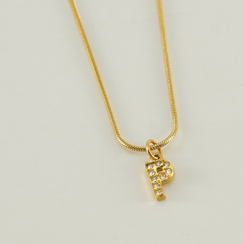 字母P项链,304不锈钢,18K真金