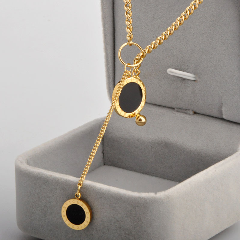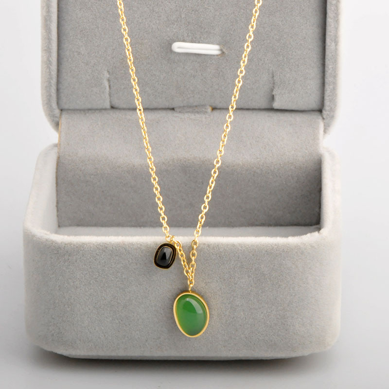 不规则黑色锆石吊坠项链,304不锈钢,18K真金 水钻:黑色