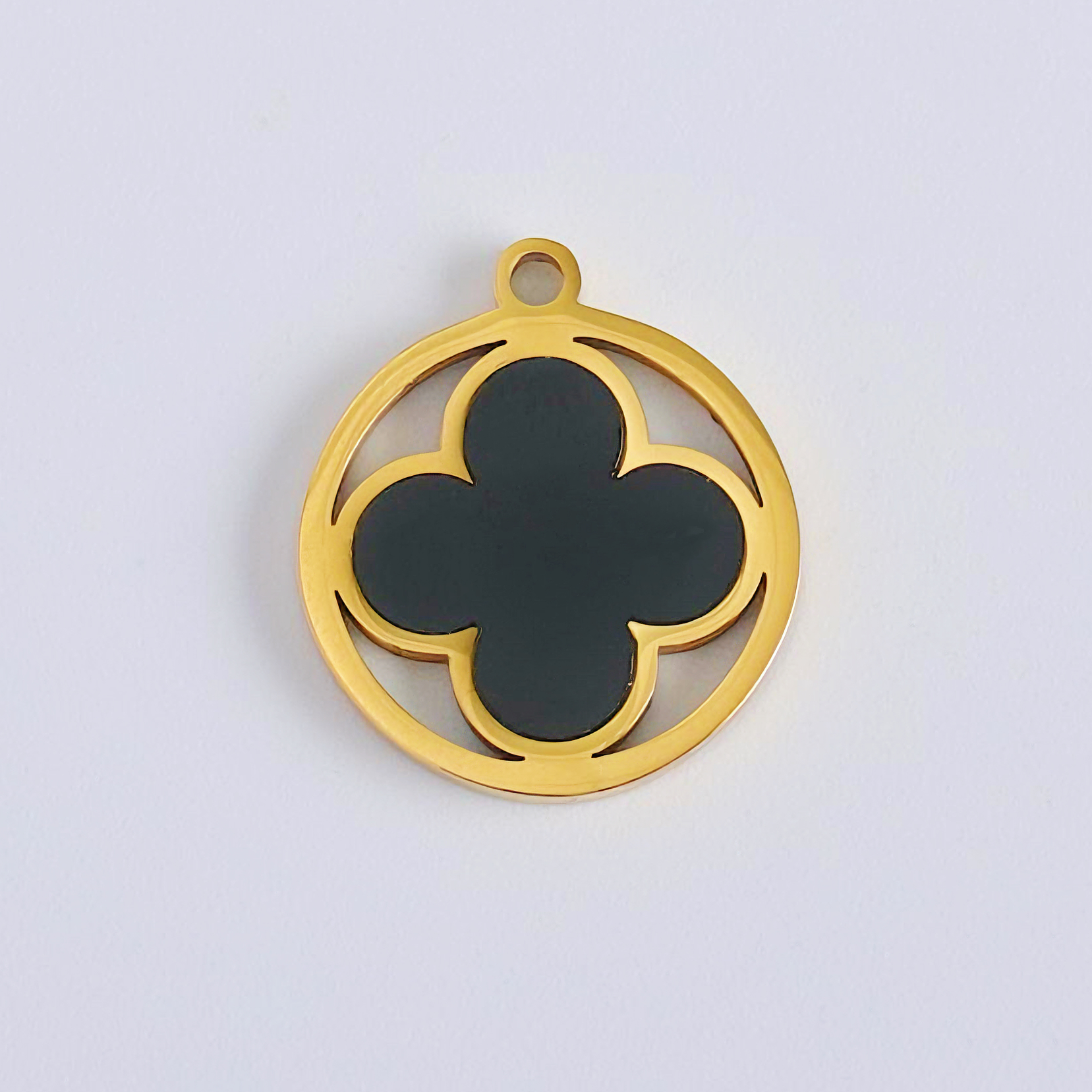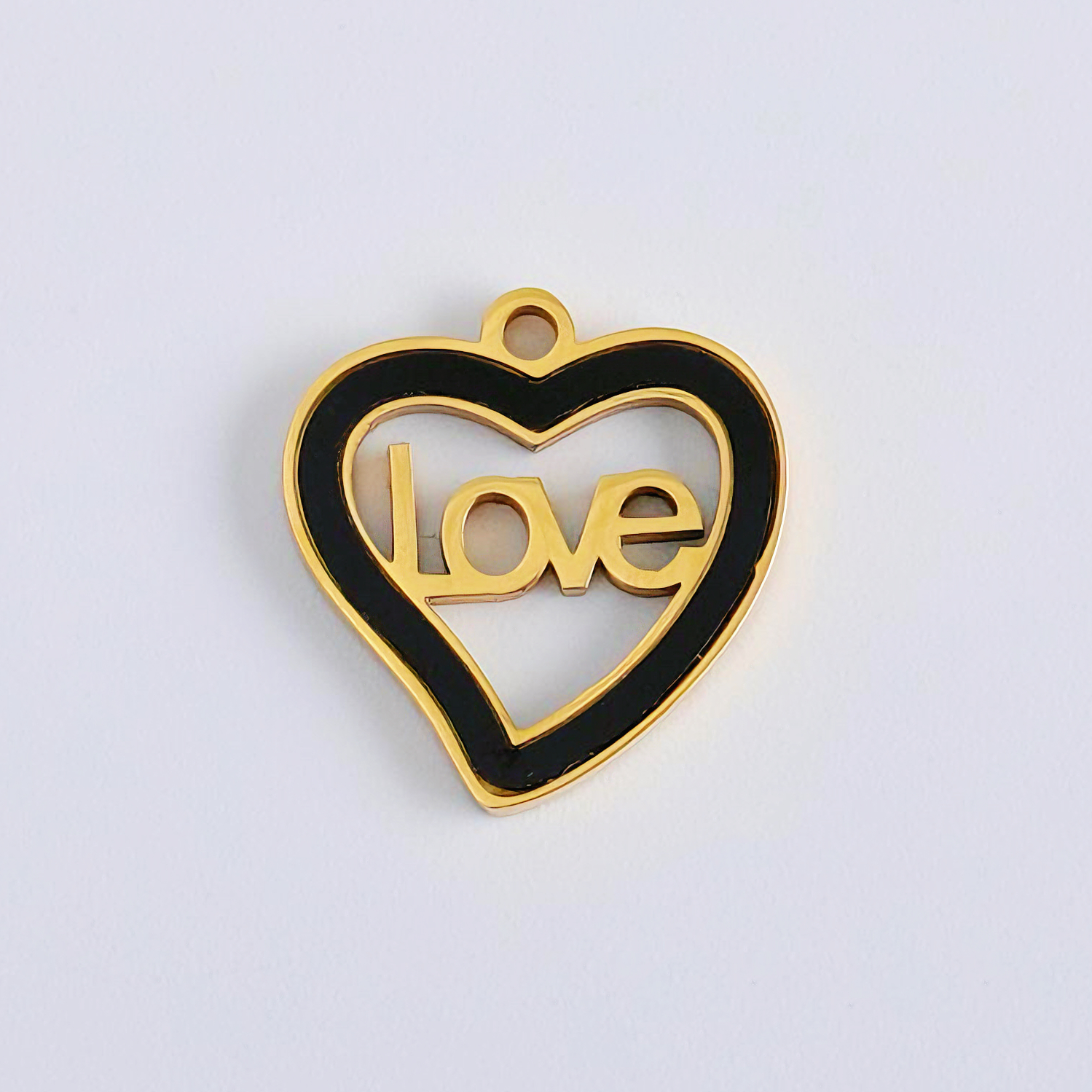 爱心吊坠,304不锈钢,18K真金+黑亚克力