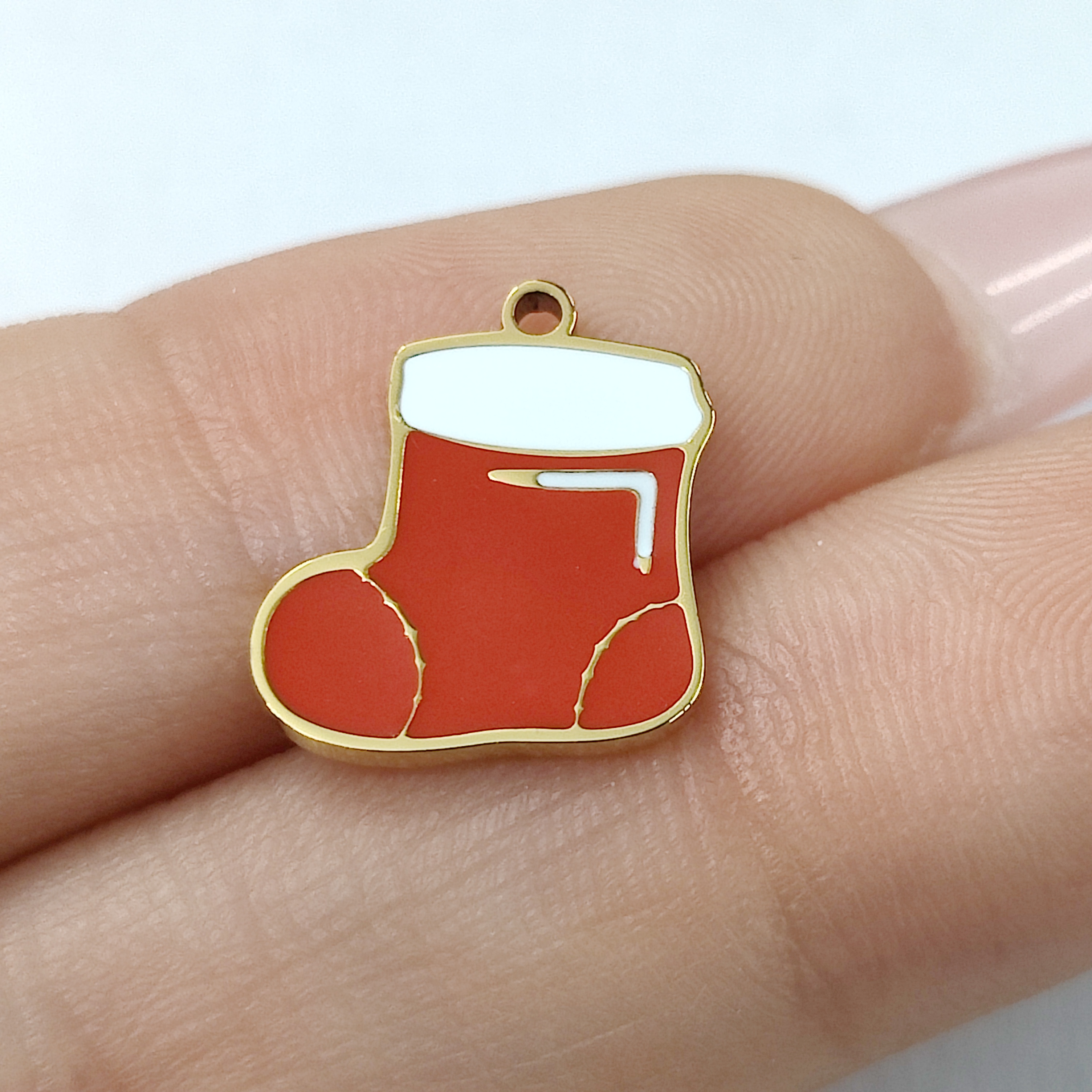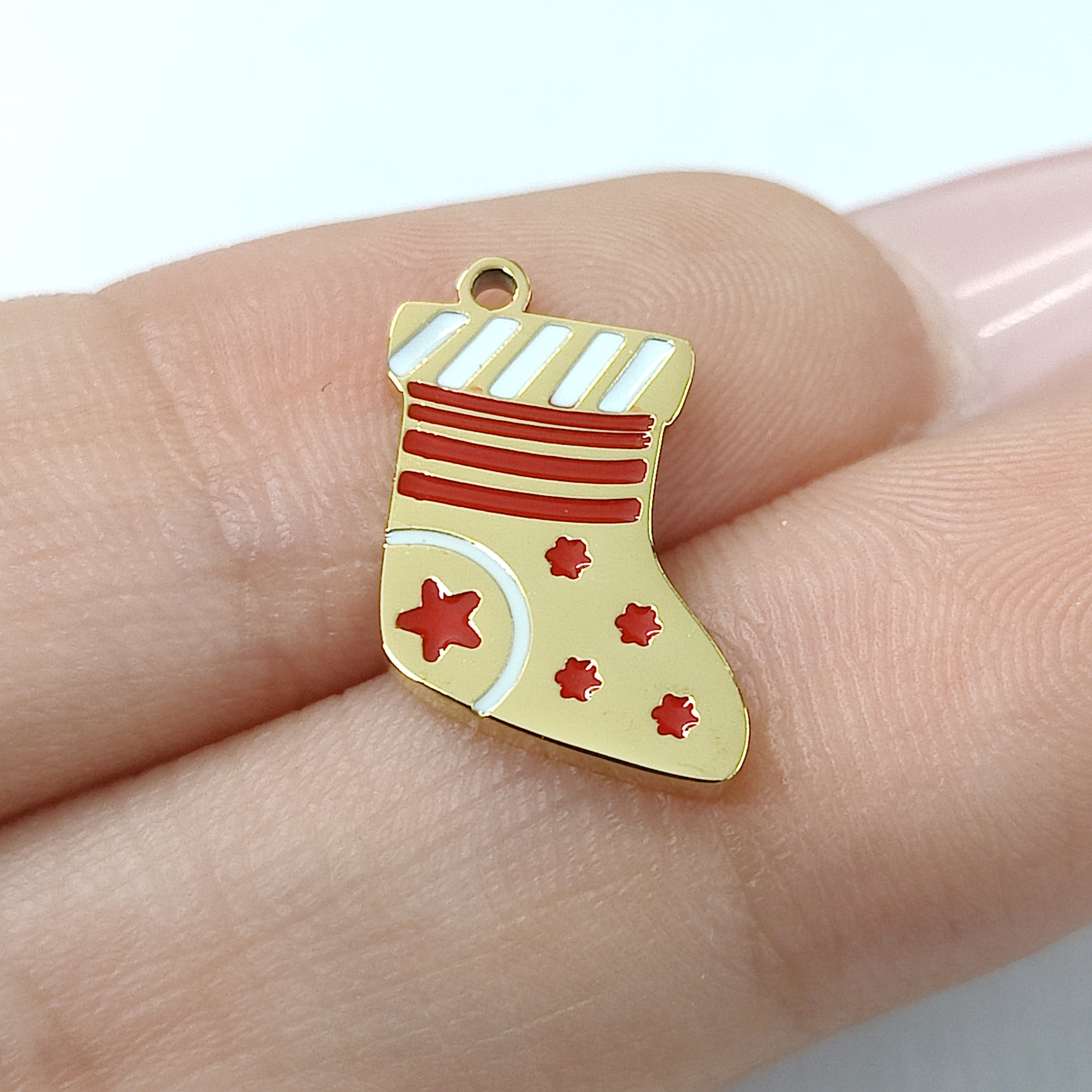 圣诞袜吊坠,304不锈钢,18K真金