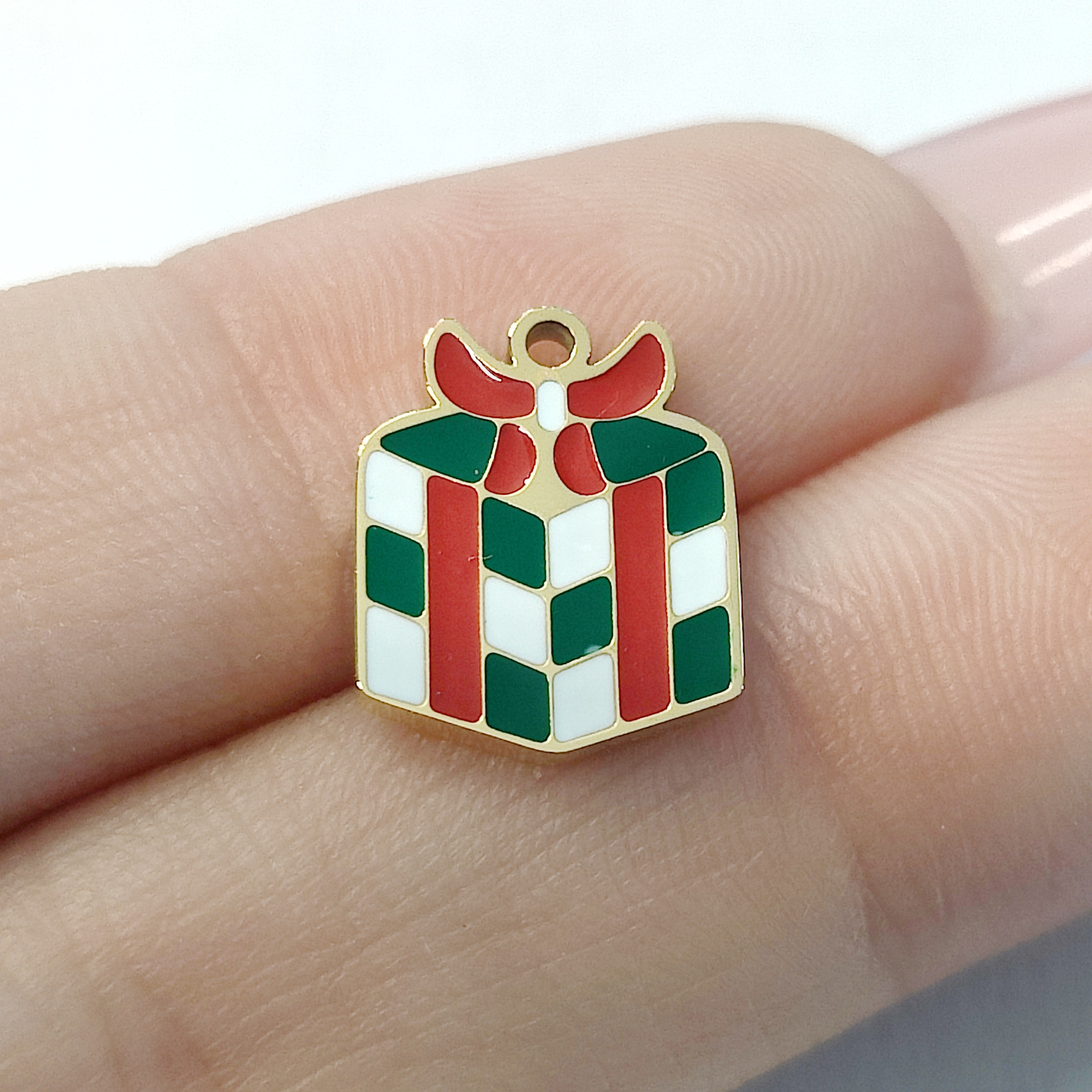 礼物盒吊坠,304不锈钢,18K真金