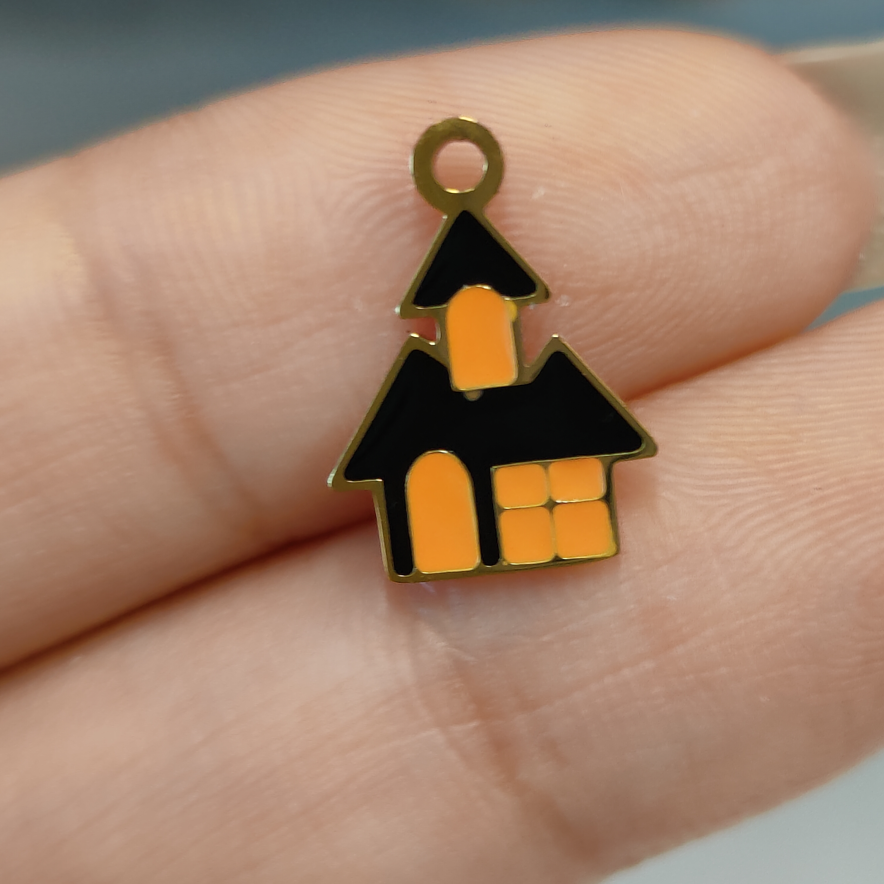 万圣节城堡吊坠,304不锈钢,18K真金