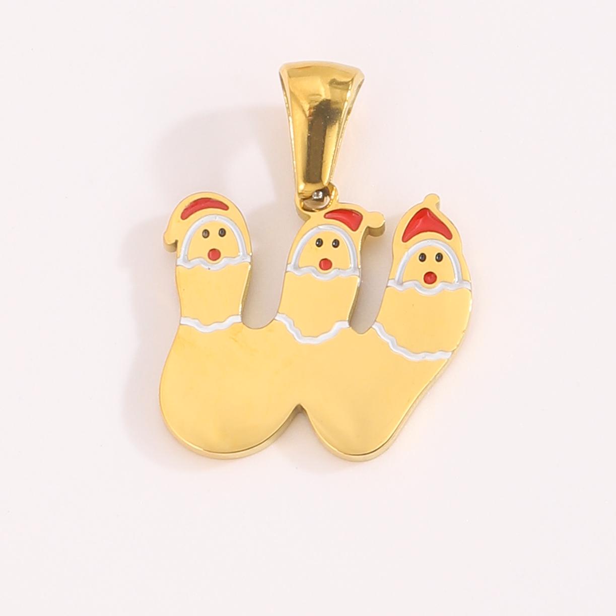 字母W吊坠,304不锈钢,18K真金