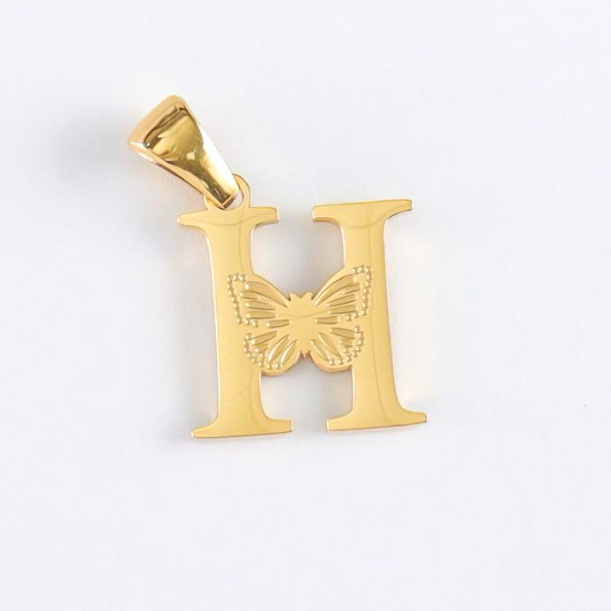 字母H吊坠,304不锈钢,钢色