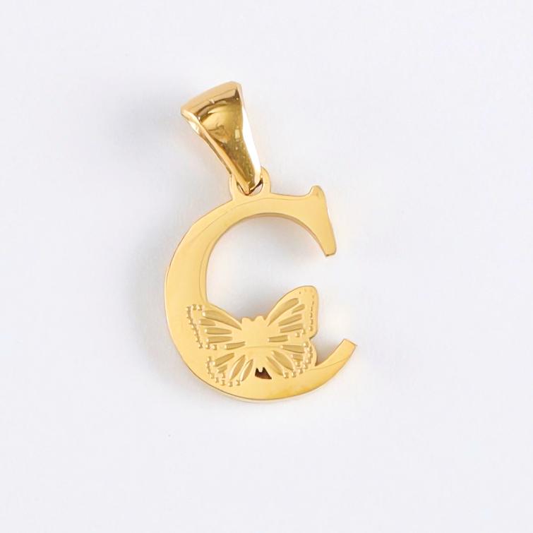 字母C吊坠,304不锈钢,钢色
