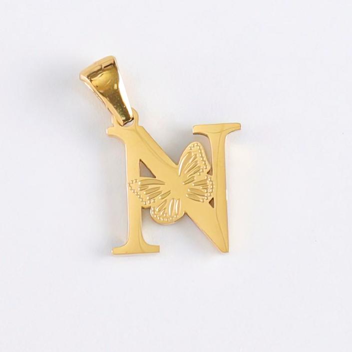 字母N吊坠,304不锈钢,18K真金