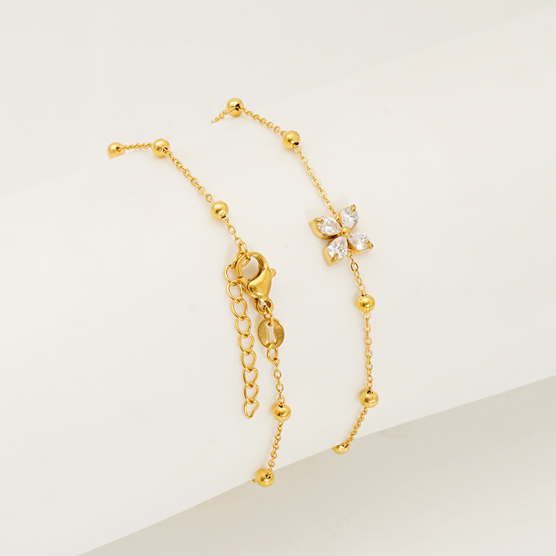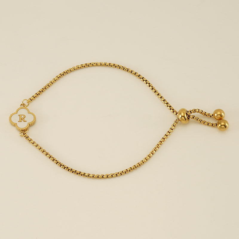 贝壳四叶草字母手链,304不锈钢,18K真金