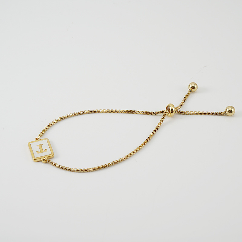 天然贝壳26字母拉拉手链,304不锈钢,18K真金