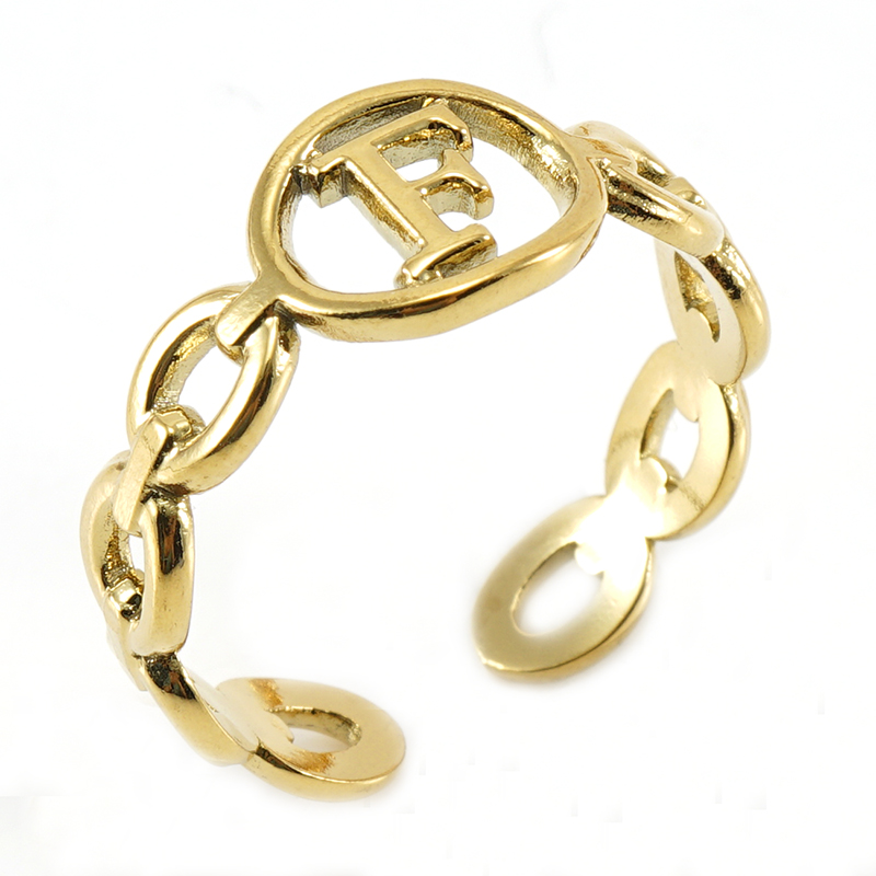 不锈风开口可调节星座字母戒指女,304不锈钢,18K真金