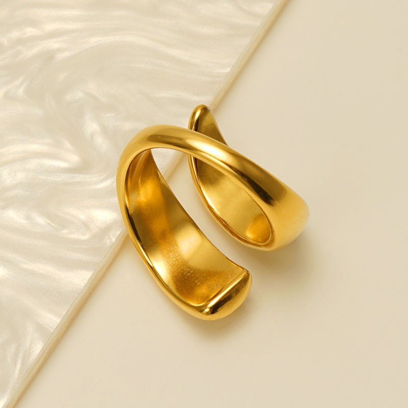 跨境时尚不锈钢18k金几何形戒指欧美钛钢高级感女士活口指环饰品,304不锈钢,18K真金